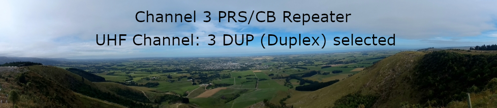 Channel 3 UHF PRS/CB Repeater is an officially registered and is located 500 meters above sea level in Waimate ( South Canterbury ).